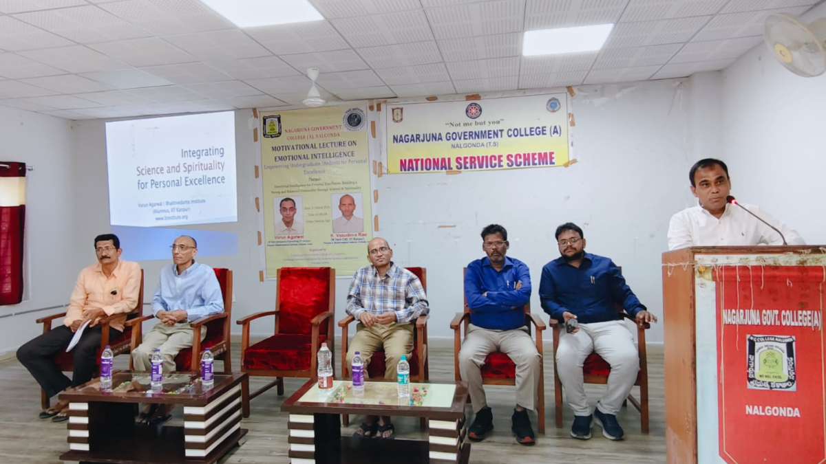 ఈ సందర్భంగా ప్రిన్సిపాల్ మాట్లాడుతూ తెలంగాణ ప్రభుత్వ రెవెన్యూ (డిజాస్టర్ మేనేజ్మెంట్) శాఖ ఆధ్వర్యంలో ఉస్మానియా యూనివర్సిటీలో నిర్వహించిన యువ ఆపదమిత్ర శిక్షణ కార్యక్రమంలో పాల్గొన్న కళాశాలకు చెందిన పదిమంది ఎన్ఎస్ఎస్ వాలంటీర్లు గవర్నర్ విష్ణుదేవ్ వర్మ చేతుల మీదుగా ప్రశంసా పత్రాలు అందుకోవడం గర్వకారణమన్నారు. పది రోజులపాటు జరిగిన ఈ శిక్షణలో వరదలు, భూకంపాలు, అగ్నిప్రమాదాలు, సునామీలు, రోడ్డు ప్రమాదాల వంటి విపత్తుల సమయంలో బాధితులను రక్షించడం, వారికి ప్రథమ చికిత్స అందించడం, హార్ట్అటాక్ వచ్చిన వారికి సీపీఆర్ చేయడం, నీటిలో పడిన వారిని రక్షించడం, భవన శిథిలాలలో చిక్కుకున్న వారిని ర్యాఫ్లింగ్ (అసెండింగ్, డిసెండింగ్) పద్ధతుల ద్వారా కాపాడడం వంటి అంశాలపై ఎస్డీఆర్ఎఫ్, ఎన్డీఆర్ఎఫ్, హైడ్రా బృందాలు శిక్షణ ఇచ్చినట్లు తెలిపారు.
