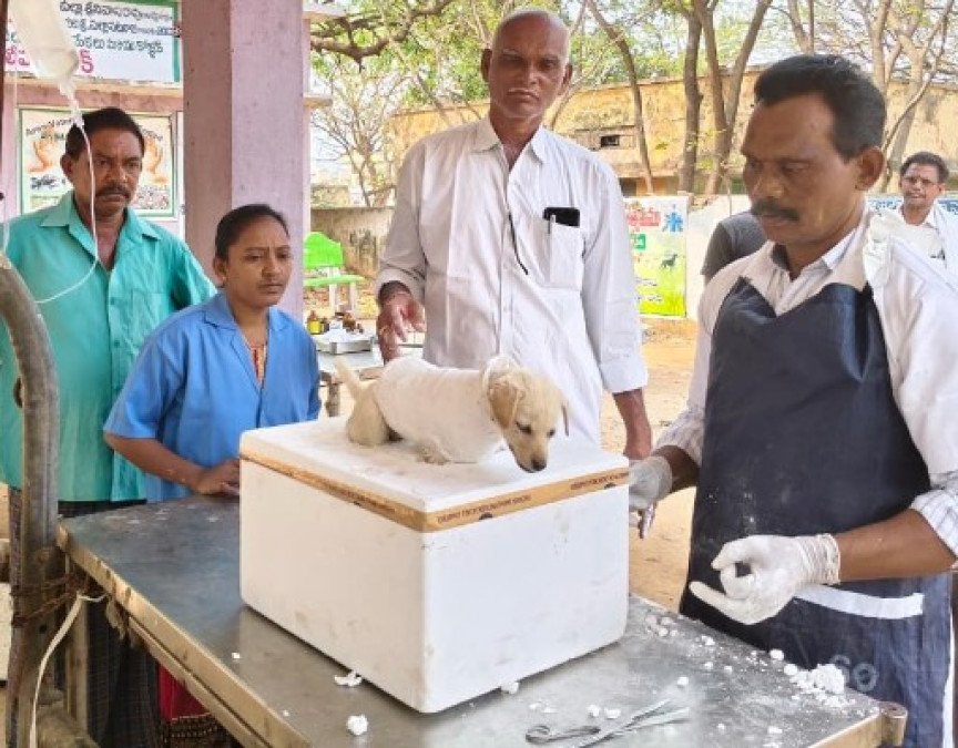 ఏ అసౌకర్యం లేకున్నా పరికరాలు లేకున్నా వాడి పడేసిన ధర్మకాల్ పెట్టెతో కుక్కను నిల్చోపెట్టిన అసిస్టెంట్ డైరెక్టర్ సమయస్ఫూర్తికి జంతు యజమానులు అబ్బురపడ్డారు